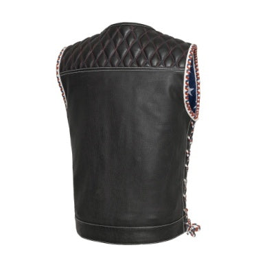 Captain Perforated - Men's Club Style Leather Vest: The Captain brings you a club style leather vest with an American Flag lining, side lacing, and all of our standard features in this Limited Edition vest.