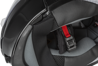 - Easy to use chin bar with push to open mechanism designed for use with gloves on